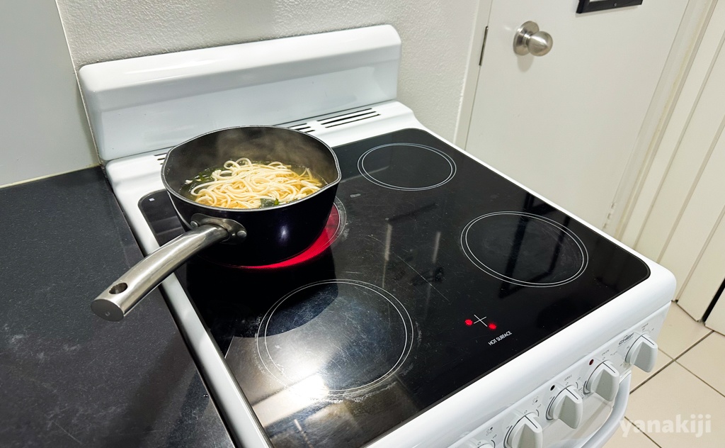 しかもこの宿のキッチン、とても使いやすくて快適なんです!コンロは安定して加熱できるし、変な格闘をする必要もありません。