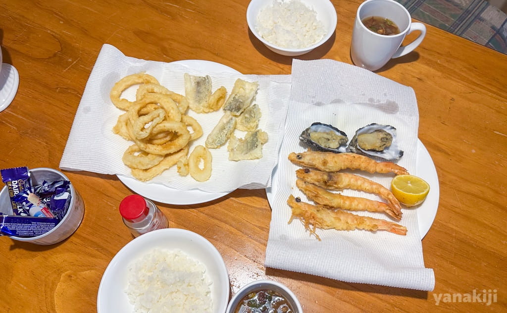 海の町だし、魚介は絶対おいしい。とはいえ、海外旅の途中で天ぷらはなかなかの挑戦。でも休息日だし、やってみることにしました。
