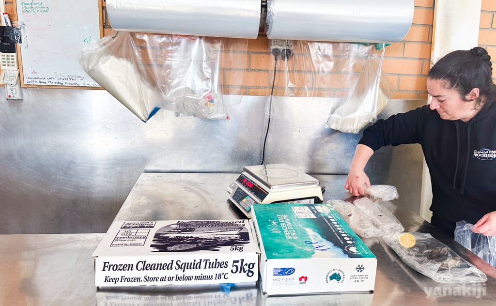見つけたのが「Thevenard Fish Processors」という魚屋。加工場併設のお店で、店内では魚が機械の中でぐるぐる回りながら下処理されている。日本の市場みたいな雰囲気で、見ているだけでも楽しい。