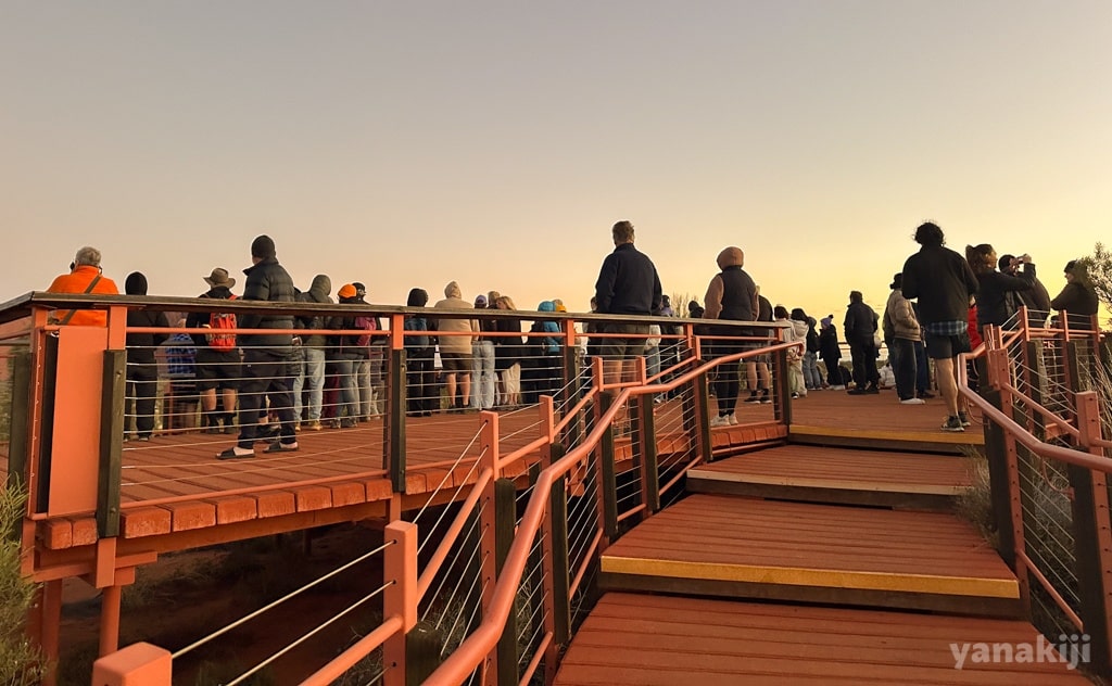 さすがウルル!ビューポイントは人も多め。常連らしき人々は、折りたたみ椅子を持参してホットドリンク片手に朝日を待ちます。ここを「リゾート」として楽しんでいる人も多いんだなと感じました。
