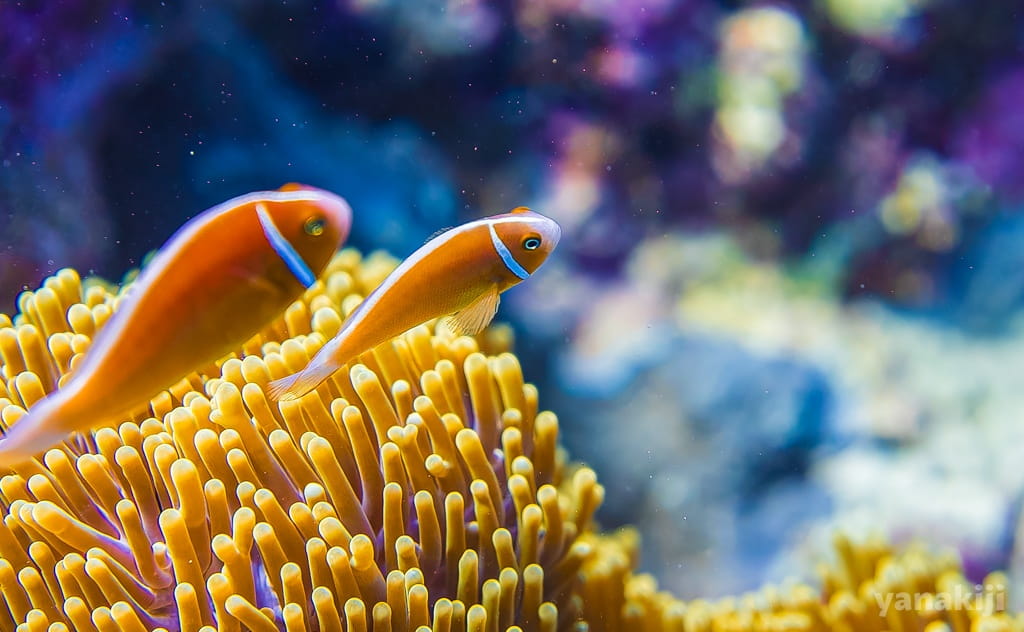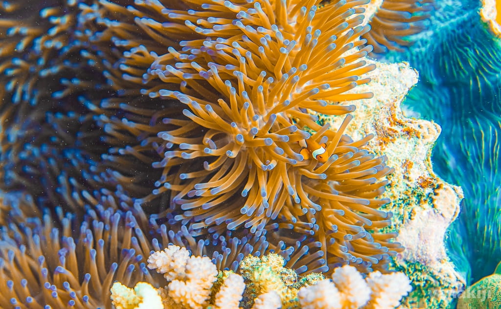 下(↓)の画像は、イソギンチャクとそこに住むクマノミ。