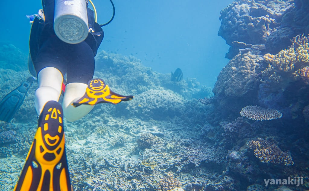 海に入ってやなぎーがまず感じたのは、「水が冷たい…!!」ということ。沖縄でのダイビングよりも明らかに冷たい。