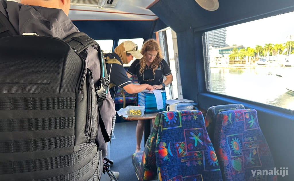 マリーナに到着したら、まずはすべての荷物を持って日帰り船に乗船。その後は、海の上でクルーズ船「オーシャンクエスト号」で生活するため、数日間は陸には戻ってきません。