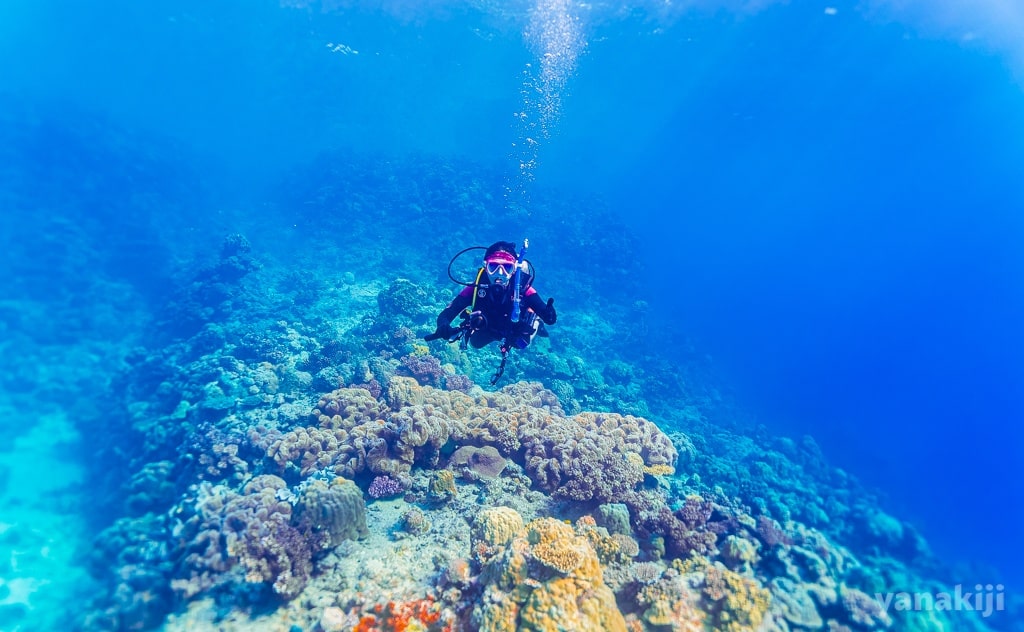 潜っていて気づいたのは、透明度が沖縄より低いということです。