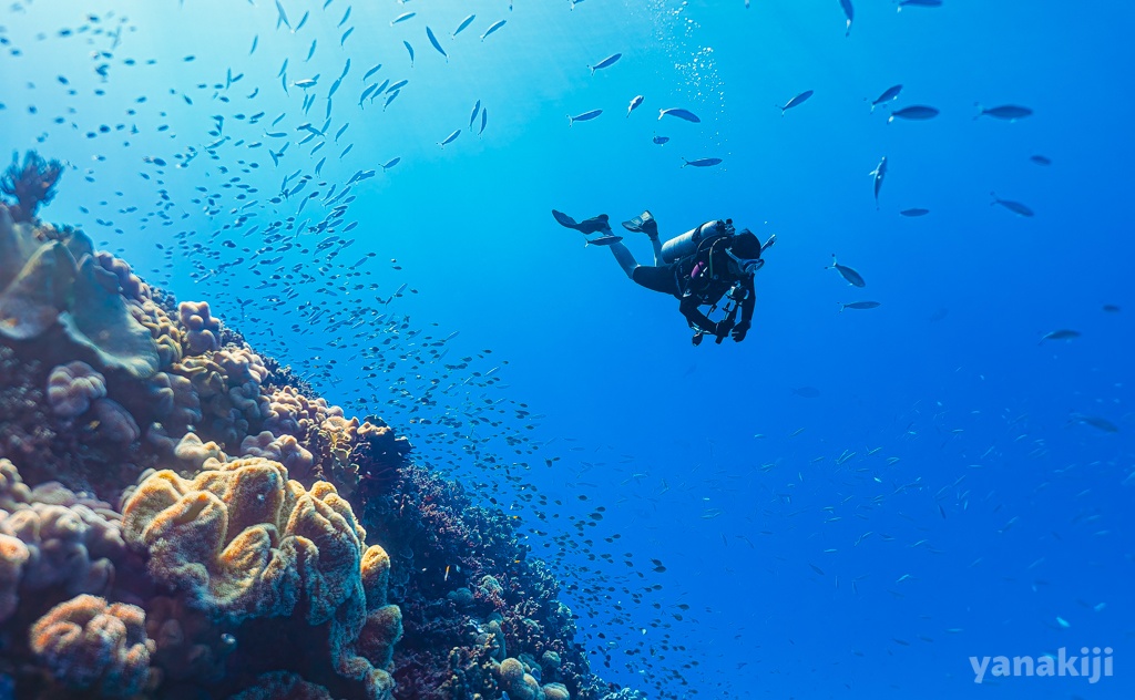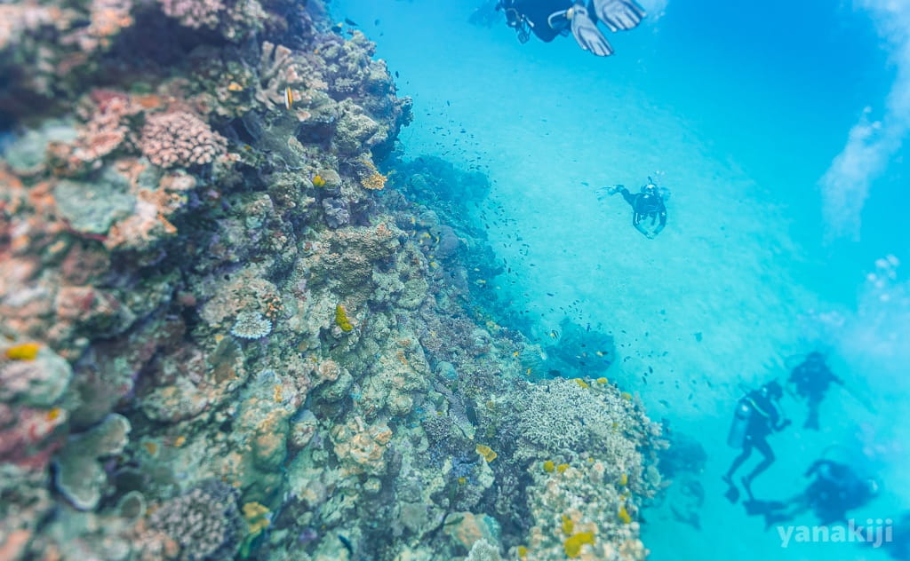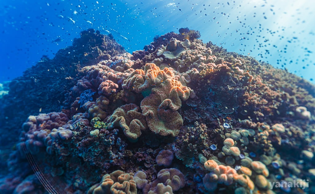 なんせサンゴの量が圧倒的!なだらかに広がる“珊瑚の坂”を泳いでいく時間は、まるで空を飛んでいるみたいで…見上げると光がゆらめき、見下ろすと魚が流れの中で踊っている。何度見ても、息をのむ景色です。