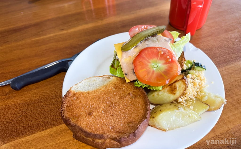 少し横になって体を休ませ、18時にダイニングへ。今夜も肉と炭水化物がメインのメニュー。