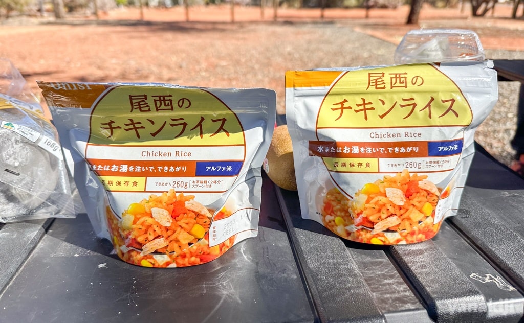 アルファ米のチキンライスも食べたんだけど、これがまた美味しくて、丸焼きチキンと合わせたら最高のご馳走に変身してくれました。