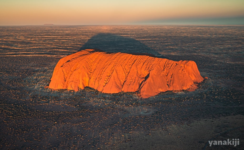 遮るものが何もない大地に、ウルルの影がとんでもなく長く伸びていて、綺麗でした。