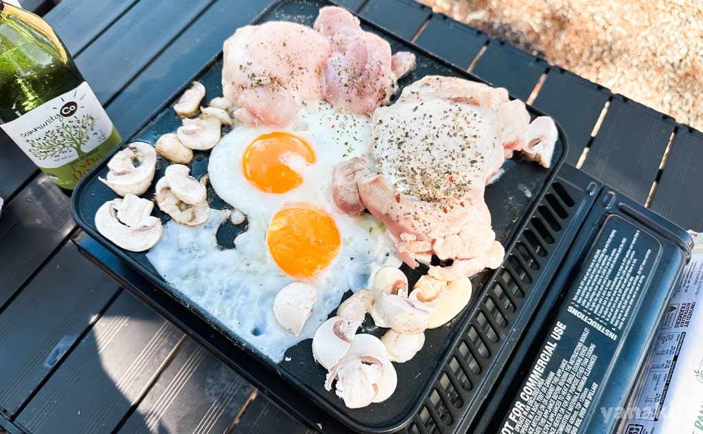 ハイキング後は、テントサイトに戻ってランチタイム。鶏肉の丸焼きを焼いていたら、すぐそばで大量の鳥が鳴き始めてびっくり。オーストラリアは鳥が多いな。
