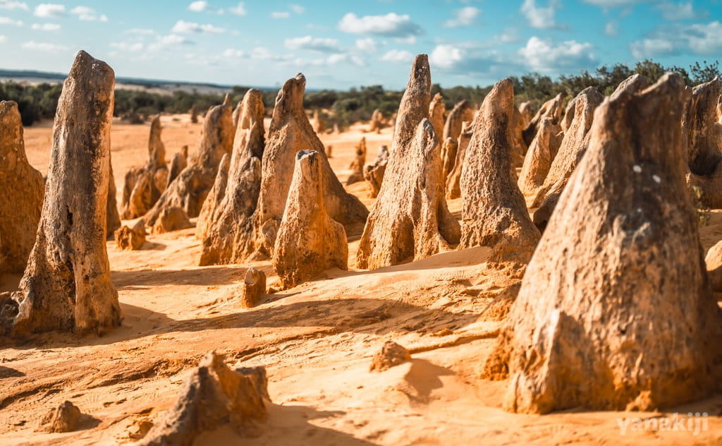 西オーストラリアのナンバング国立公園にある有名スポットで、砂の大地に石の柱が無数に突き刺さっている。しかも形がとんがりコーンみたいに尖っていて、見渡す限りトゲトゲ。ナミブ砂漠やサハラ砂漠のような砂丘メインの砂漠とは、景色の方向性がまるで違う。