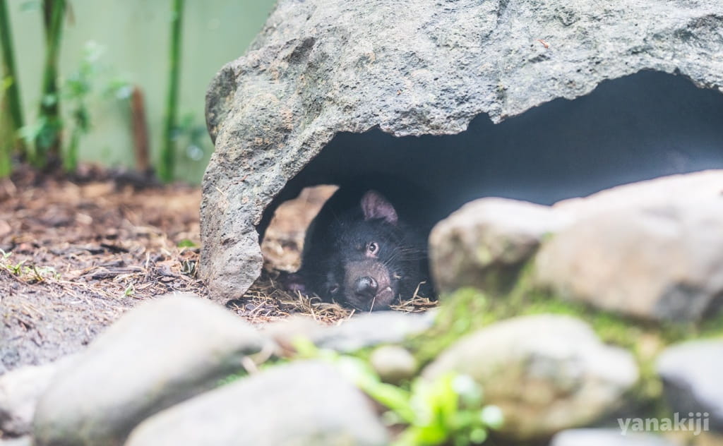 岩陰で休む「タスマニアデビル」