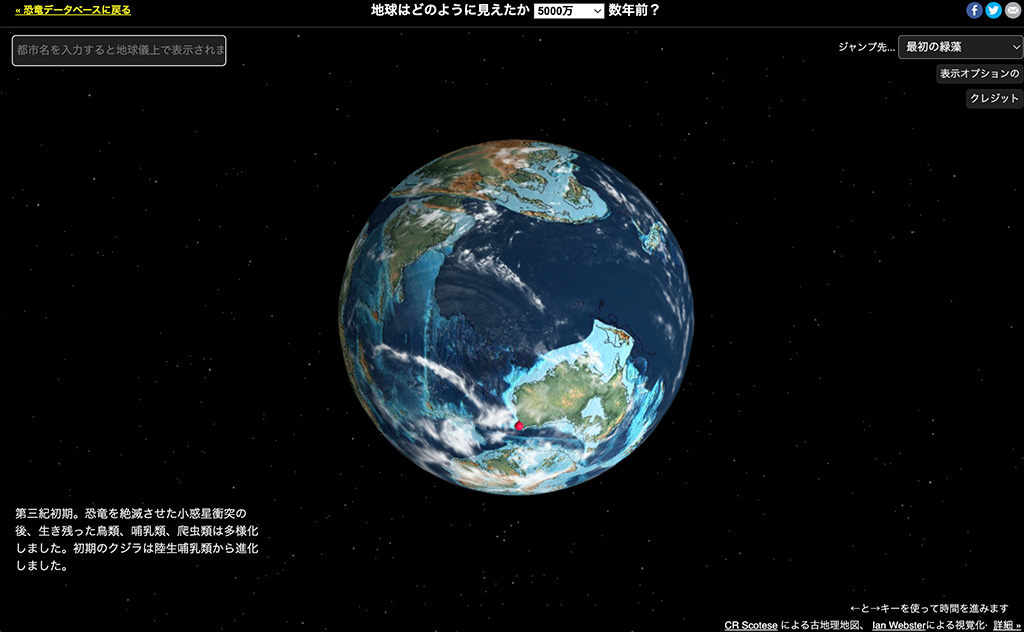 これは5000万年前の地球儀のイメージですが、この頃から今のオーストラリアに近い形をしていたことが分かりますね。