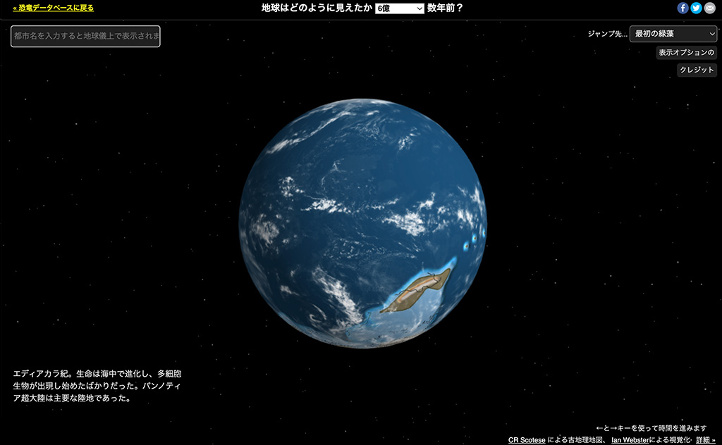 今から6億年前の地球は、今とはまったく違う姿でした。大陸が南半球側に集まって陸続きでした。