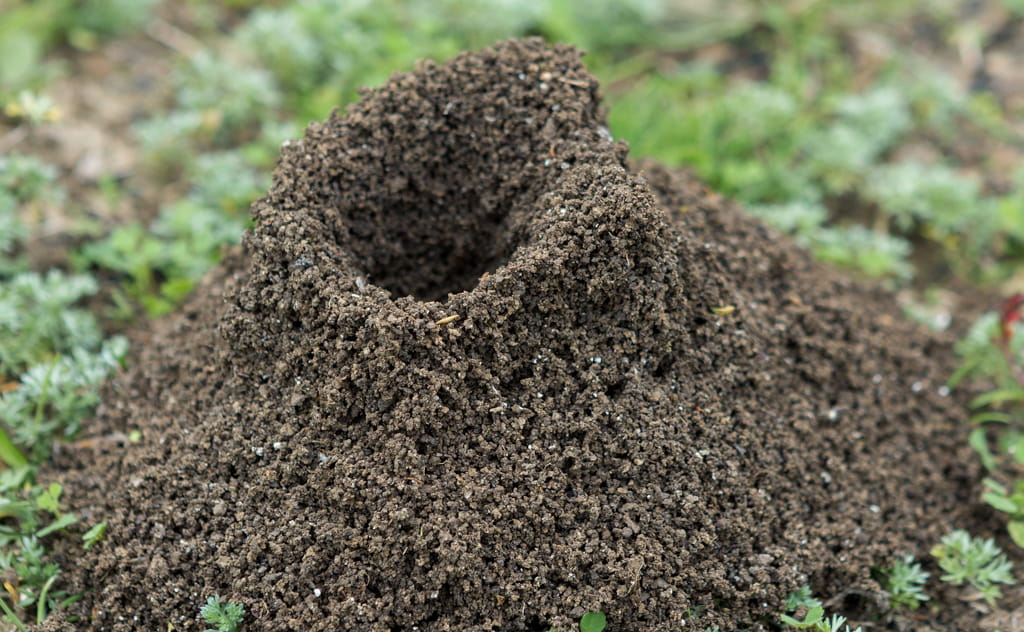 …ですが、アリは地表に高くそびえる巣を作ることはほとんどありません。アリは地中が主な生活の場で、地面に小さな土の山や穴ができる程度。