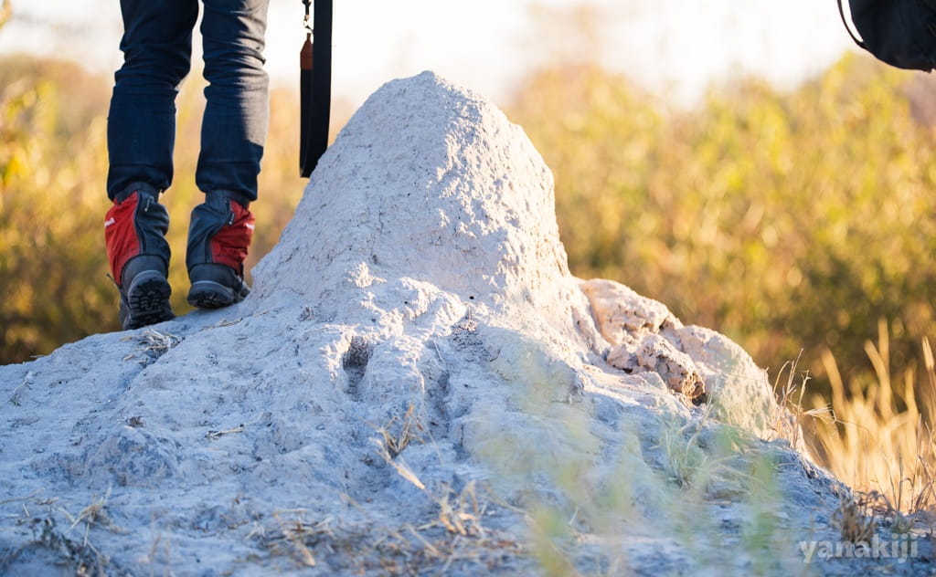 ボツワナで見た白い蟻塚。踏んでも壊れない
